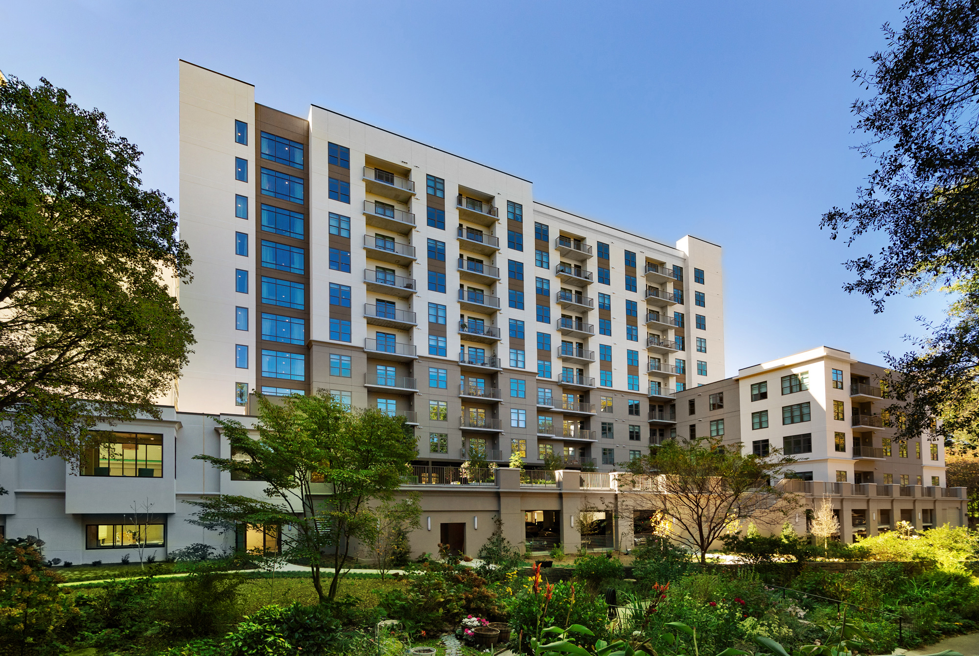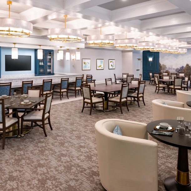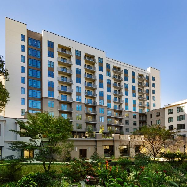 The Garden Tower an Independent Living (IL) building is all new construction over three levels of parking (293 spaces). The building is ten stories over most of its height with a step down to four stories at the eastern end to suit zoning. The building will have 98 units from 1 BR to 3 BR units and will also host a dining room on level 1 with break out space onto a large amenity deck. Renovations to the North Tower buildings consist of revisions to common spaces, dining, administration area, mail room & salon, meeting rooms and staff support spaces. Renovations will also include 28 IL units on the 2nd and 3rd floors along with exterior renovations. The West Tower includes renovations to fitness, aerobics, salon, café and a new indoor pool.