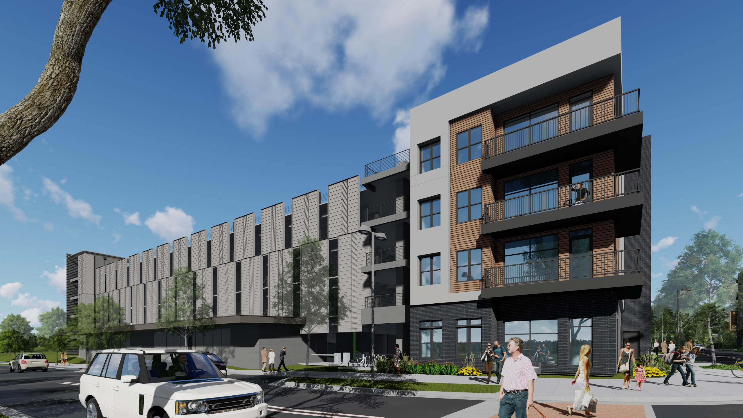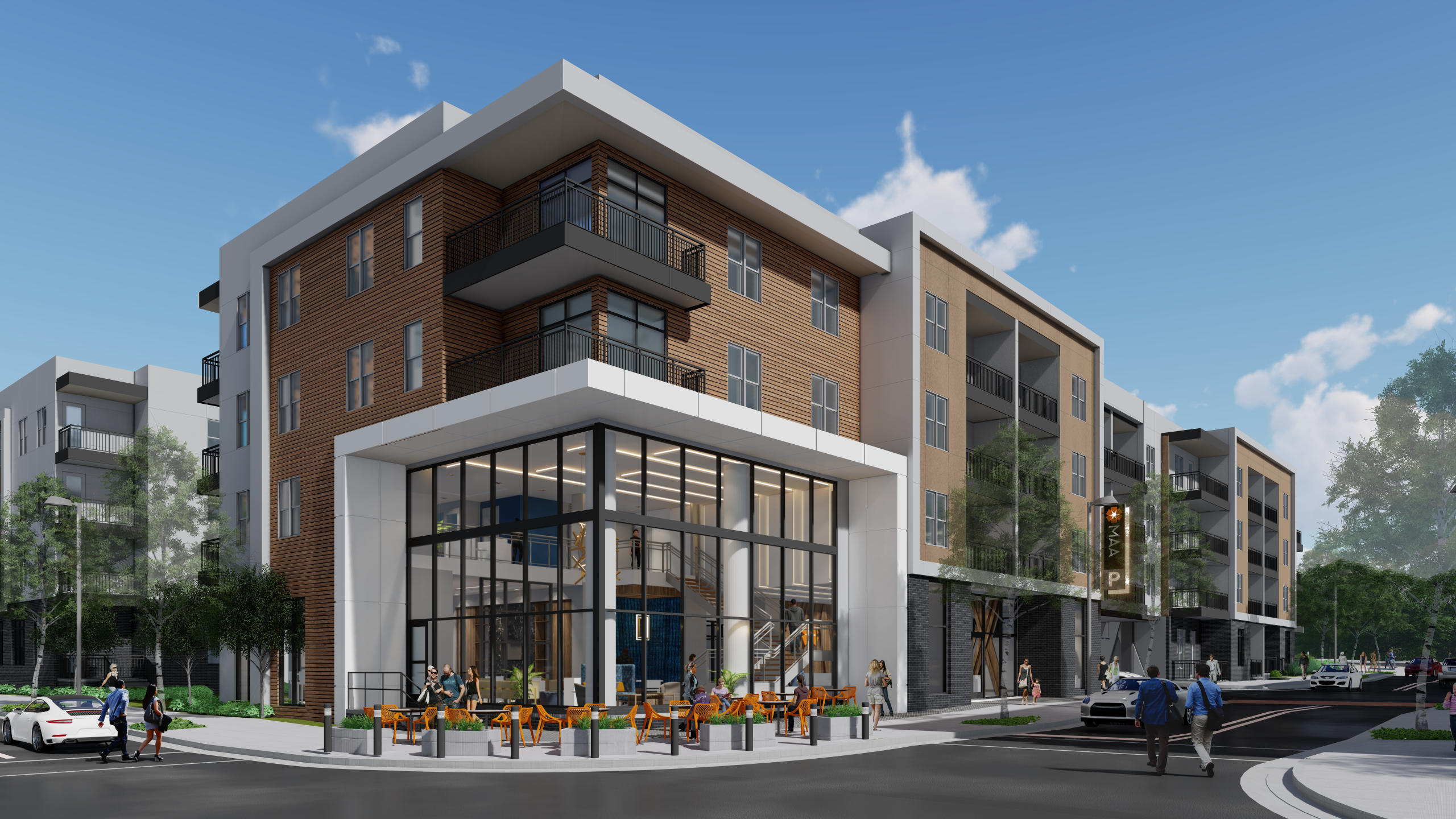 three 4-story multi-family
