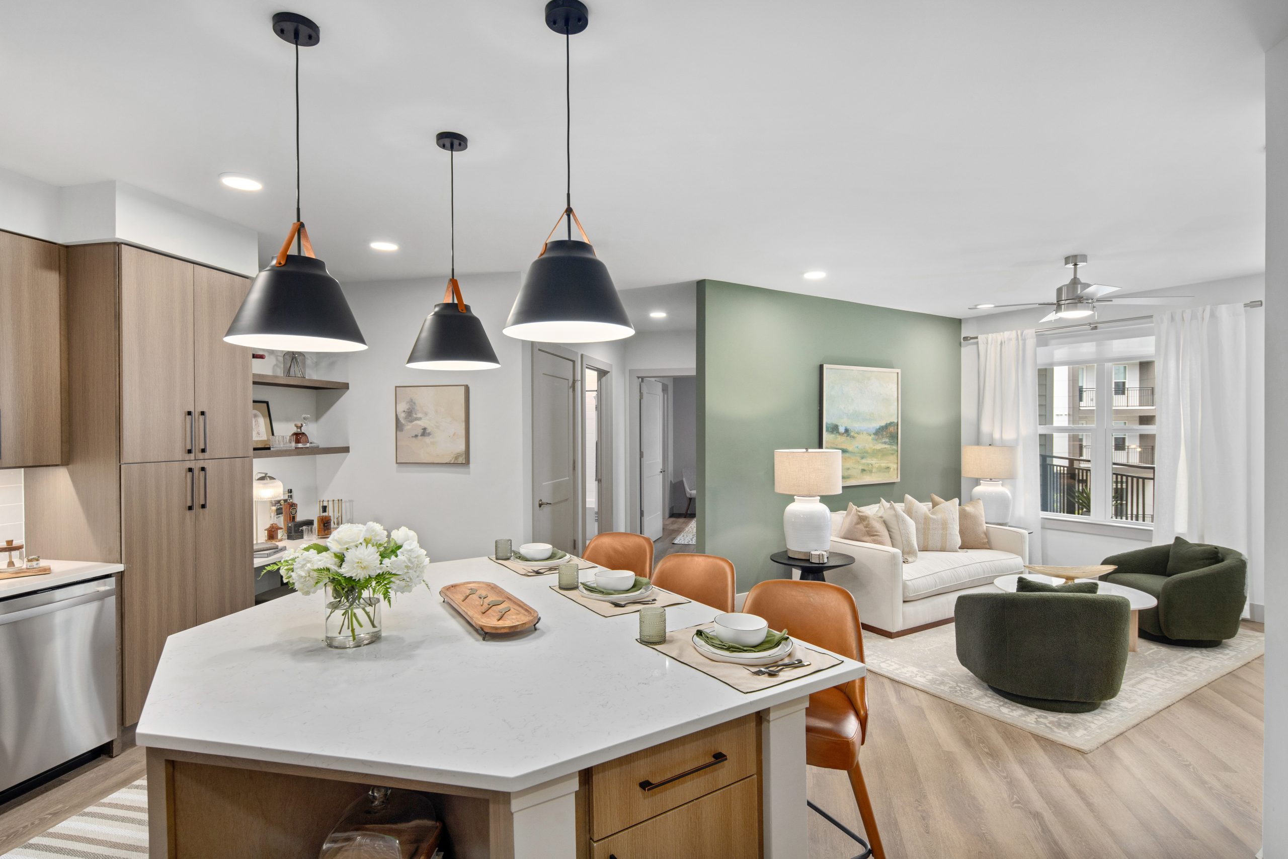 kitchen and TV entertainment areas, a pet