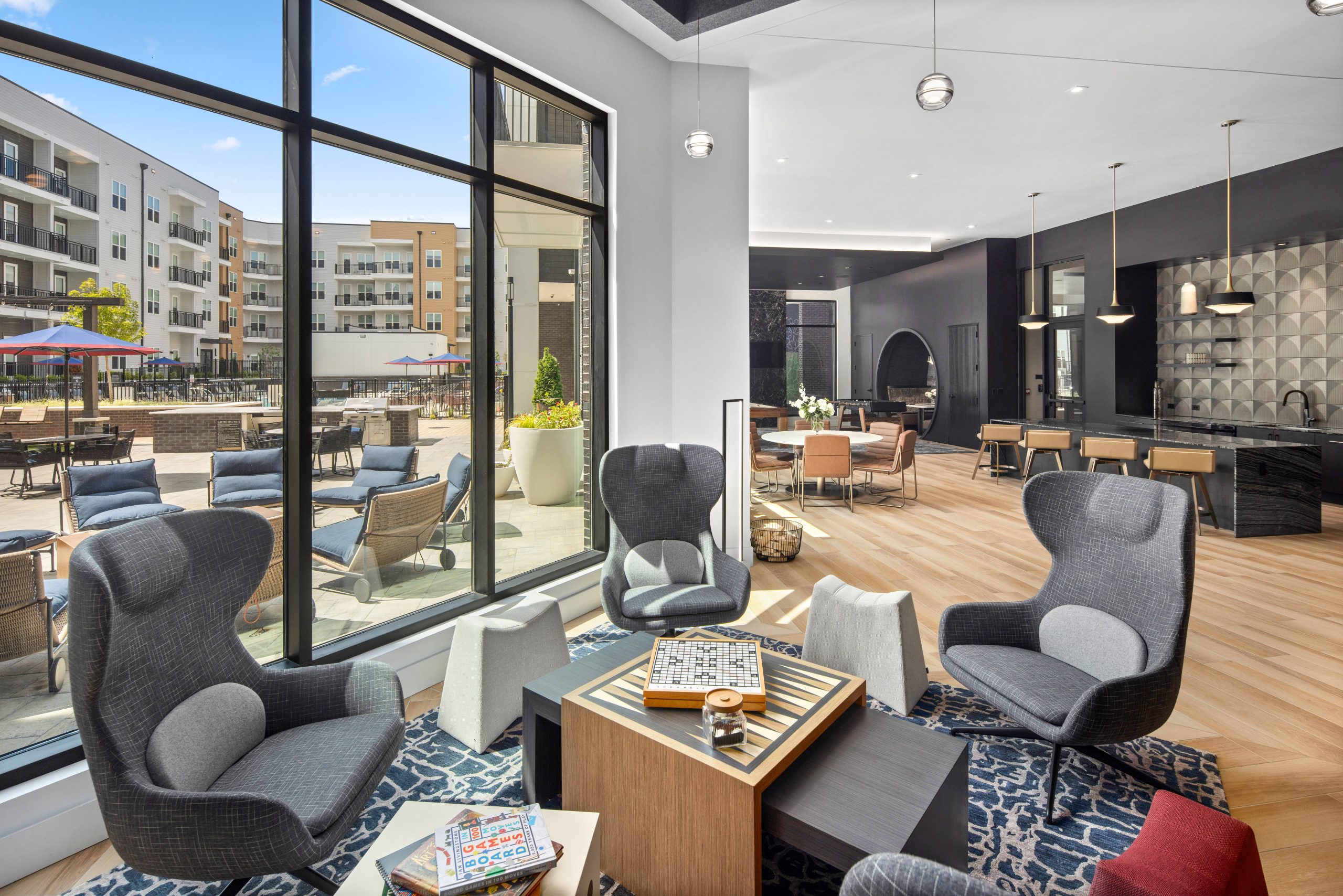 club, gaming, and reading lounge area, a